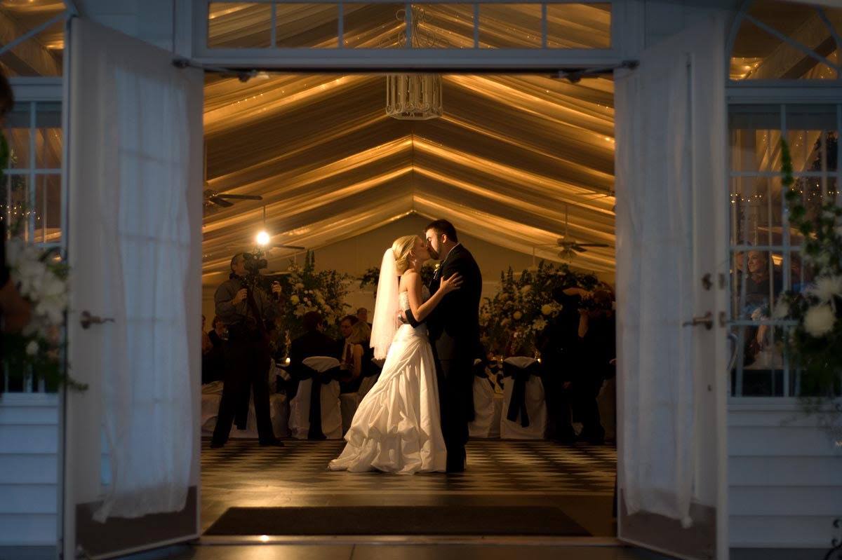 Created in the style of the estate, Caldwell Pavilion offers a classic background for the ultimate wedding reception! With our elegantly gabled entry, floor to ceiling windows, floor length table linens/chair covers, hurricane candle centerpieces, specialty lighting/décor, and black/white dance floor. We are confident we can make your Dreams come true!