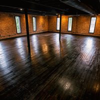 The Brick Room – An upper level, indoor space measuring nearly 2,800 square feet with lofty 13 foot ceilings, native exposed brick walls, floor-to-ceiling windows and restored heart pine floors.